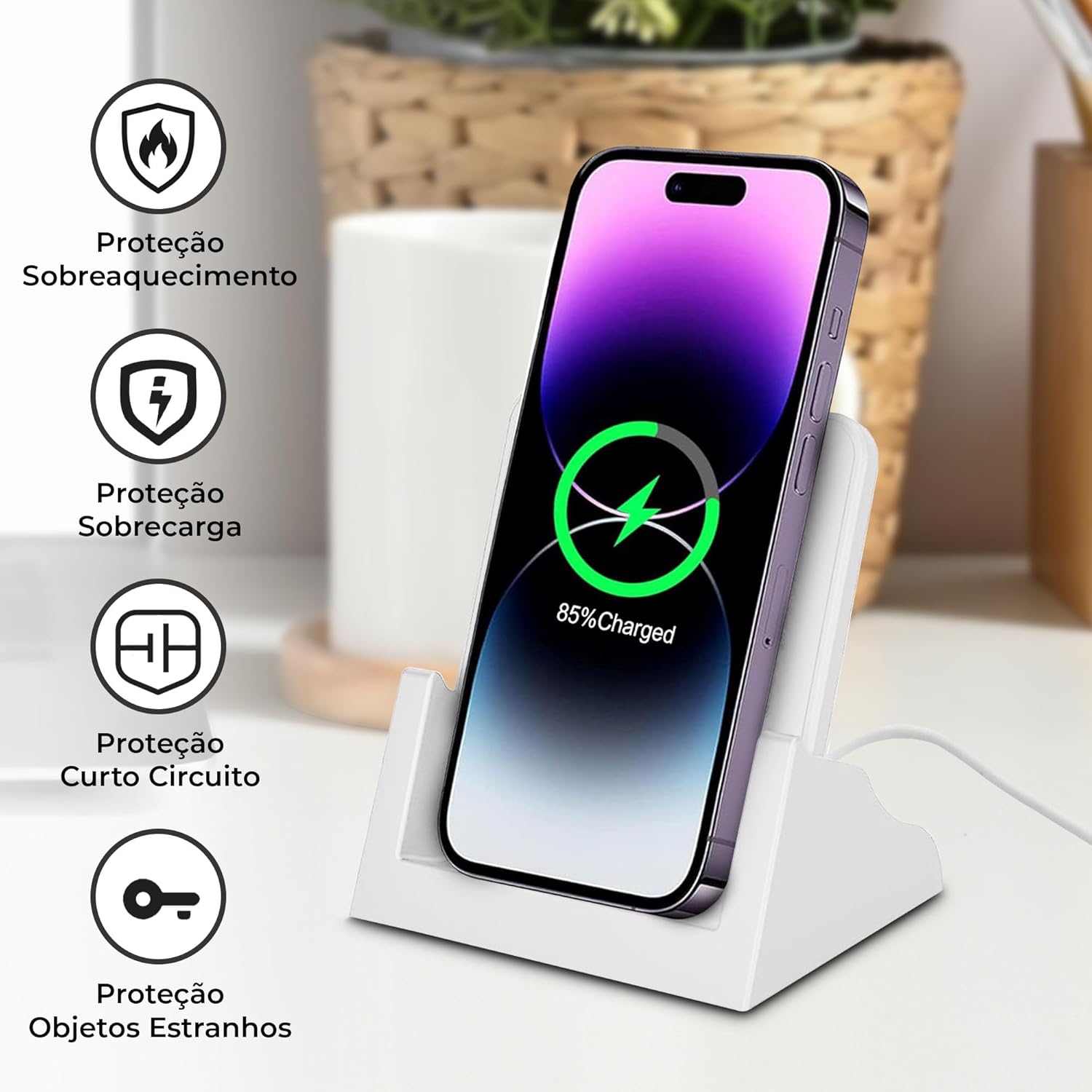 O Stand com Carregador por Indução Wireless 10w para Celulares é a resposta para carregar o seu celular de forma prática e eficiente. Compatível com carregamento QI, o carregador alimenta seu celular com potência de 5V ou 9V, conforme necessário.