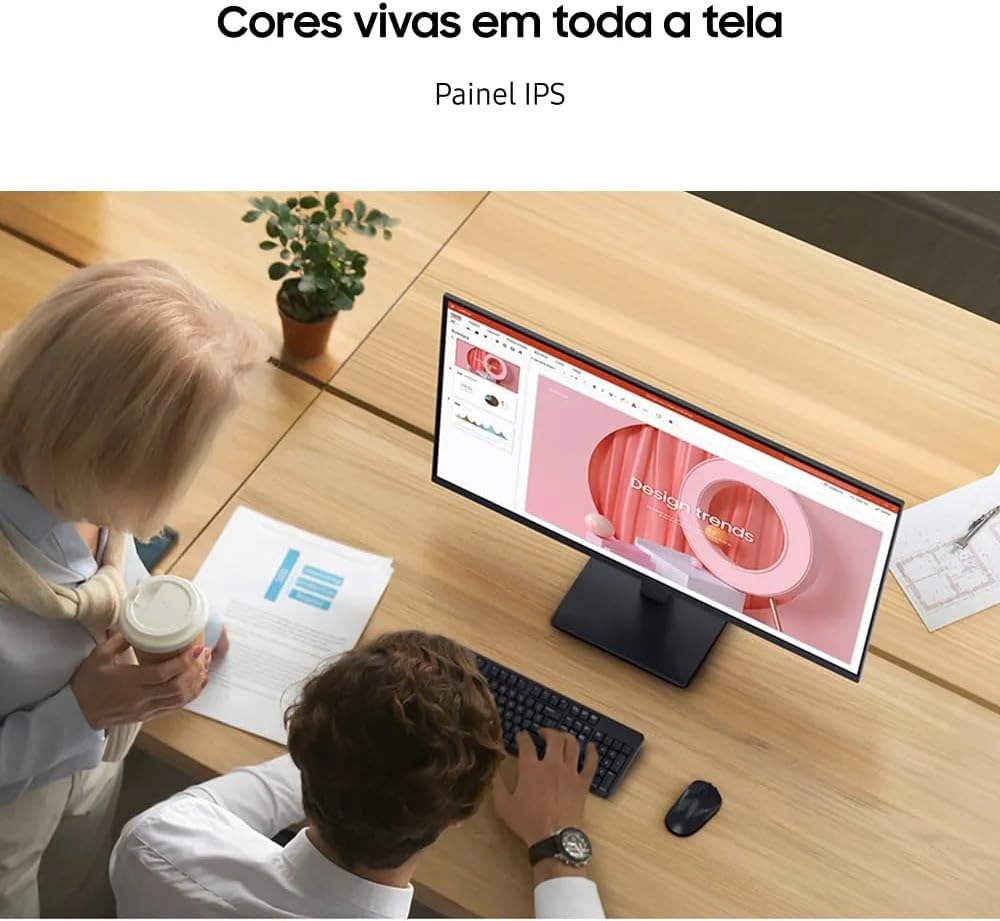 Monitore Samsung 24 “FHD, 75 Hz, Freesync, HDMI, DP, Preto, S3
